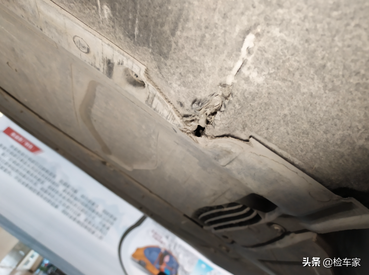 路试完毕,来到上架地点,首先就看到发动机下护板轻微剐蹭,不过不算严重,可以无视它继续使用。