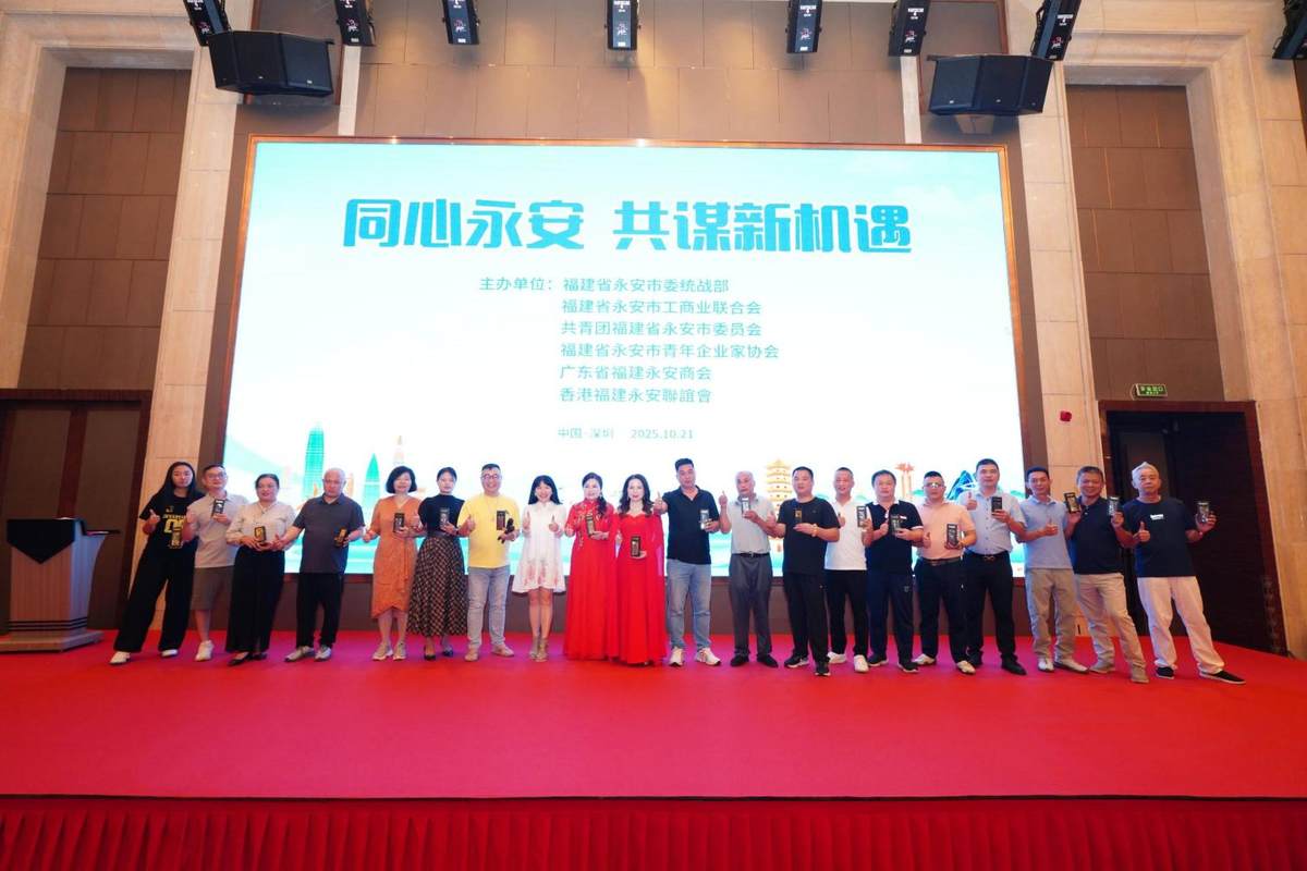 10 月 20 日至 22日,“同心永安,共谋新机遇” 主题系列活动在深圳联动举办。活动由福建省永安市委统战部、福建省永安市工商业联合会、共青团永安市委员会、广东省福建永安商会、福建省永安市青年企业家协会、香港福建永安联谊会等联合开展,汇聚行业专家、龙头企业及跨区域企业代表,通过晚宴交流、专题座谈、拜访高科技企业等形式,搭建跨区域合作平台,共话燕商新势力的机遇与挑战,推动区域协同发展。