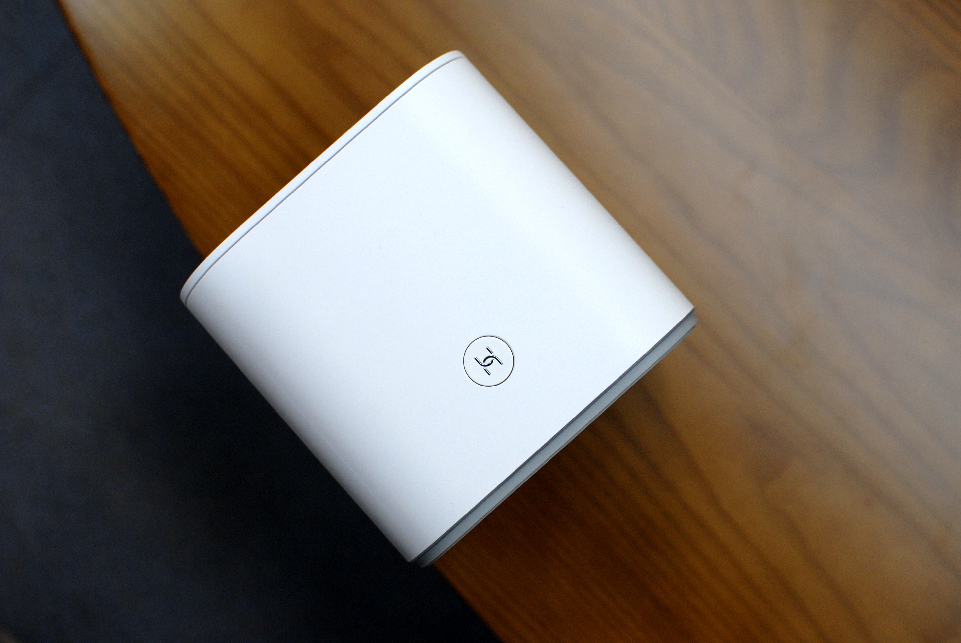 荣耀路由的颜值没得说,时尚简约属于百搭系的外观,白色的机身表面采用细腻的磨砂喷涂工艺,触摸手感极佳,可以看出做工也属于优秀的水准,正面是我们熟悉的HOME键,而在底部的基座处还设计了一盏LED指示灯,方便用户根据不同的颜色判断当前的状态。
